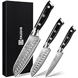 3PAUDIN31% RabattPAUDIN Messerset, Küchenmesser Set 3-tlg aus hochwertigem Carbon Edelstahl, Ultra Scharfes Messer set mit Chefmesser Hackmesser Allzweckmesser, Profi Kochmesser mit Pakkaholz Griff