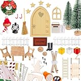 3FFZZKJWichteltür Set Wichtel Zubehör Weihnachten, 46Pcs Weihnachtswichtel Tür Komplettset mit Licht Weihnachtsdeko Elfentür, Holz Wichtel Tür Deko für Feentür Dänische Weihnachtsdeko für Advent, Weihnachten